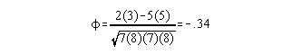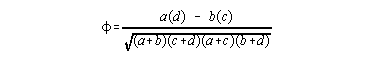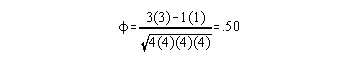 A phi correlation coefficient tells you the strength of the relationship between two dichotomous variables. The sign carries little meaning. It only indicates which diagonal had the greater concentration of scores. The phi coefficient is a signed number between -1 and 1 where again zero represents no relationship.