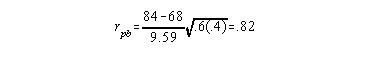A point biserial correlation coefficient tells you the strength of the relationship between one continuous and one dichotomous variable. The sign carries little meaning. It only indicates which group tended to have higher scores. The point biserial coefficient is a signed number between -1 and 1 where again zero represents no relationship.