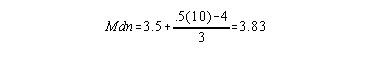 x f 6 1 5 2 4 3 3 2 2 2 Mdn = 3.5 +(5-4/3) = 3.83