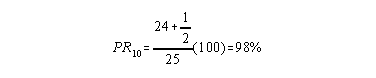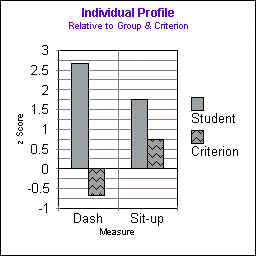 For example: Assume you have collected sit-up and 50 yard dash times. The individual you want to construct a profile for did 24 sit-ups (in 30 seconds) and had a dash time of 7 seconds. Also, assume the reference group (eg. the class the student was tested with) measures and criterion measures were: